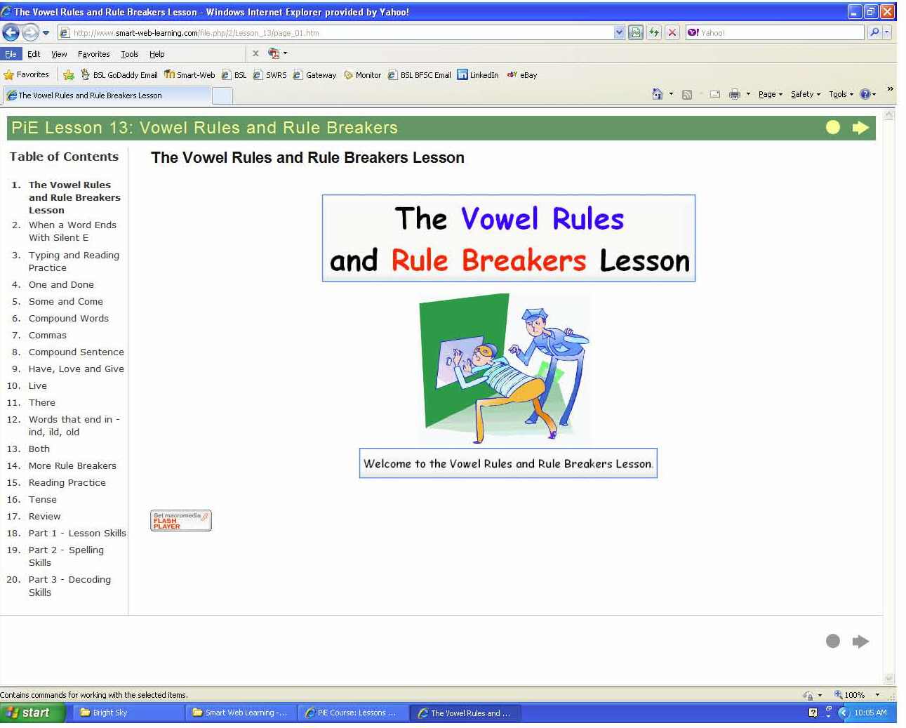 There is an Illustrated Dictionary, covering all of the words located in the first 11 lessons, that opens in a new window and is always available for use. As well, a link to the Webster's Student's Dictionary is provided.